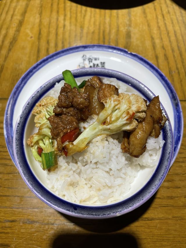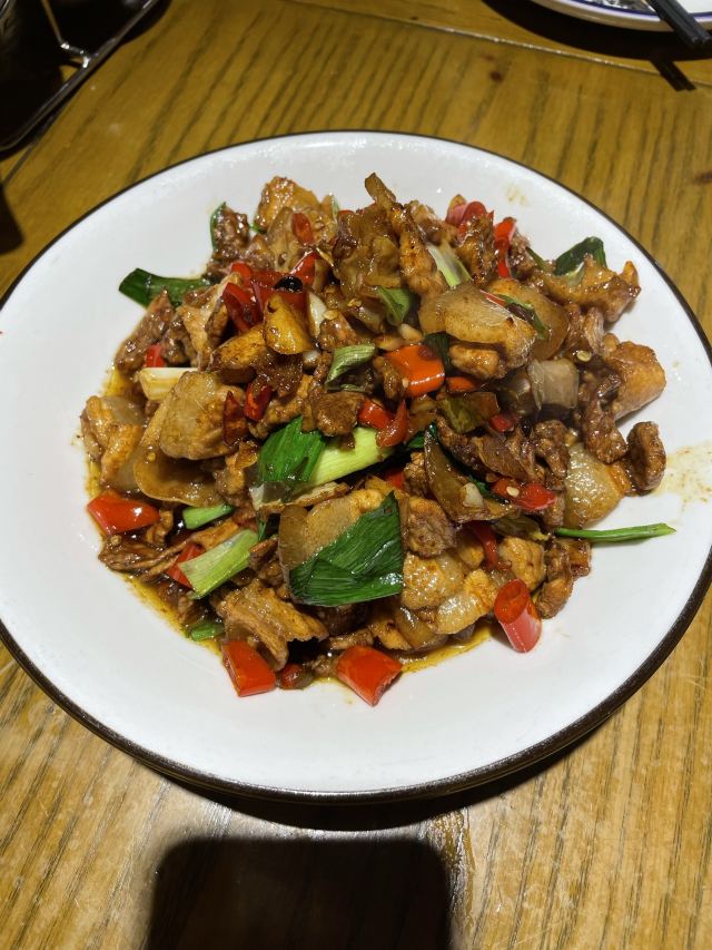 来岳阳吃的第一餐饭,真的是大大的满足,点了三个菜,都很喜欢。 「石门肥肠钵」招牌菜,可惜肥肠有点少,吃得意犹未尽,肥肠很好吃 「大盆有机花菜」里面还有莴苣、藕搭配,很棒。 「老坛辣椒炒肉」这边的炒肉真的要点一个,很喜欢 而且辣度刚刚好,很下饭,吃得太满足了。而且价格也不贵。