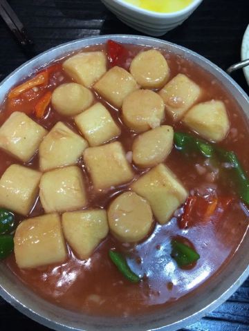大骨头两个,肉沫恋粉条,麻辣酱骨头,铁板日本豆腐,老式鸡蛋汤,糖醋里脊,麻辣鸭头,水煮肉片,黄豆猪蹄,铁板鲶鱼,鱼香肉丝,雪花鸡柳,蛋花玉米羹,虾仁蒸水蛋,麻辣千页豆腐,麻辣回锅肉,麻婆豆腐,酸菜鱼