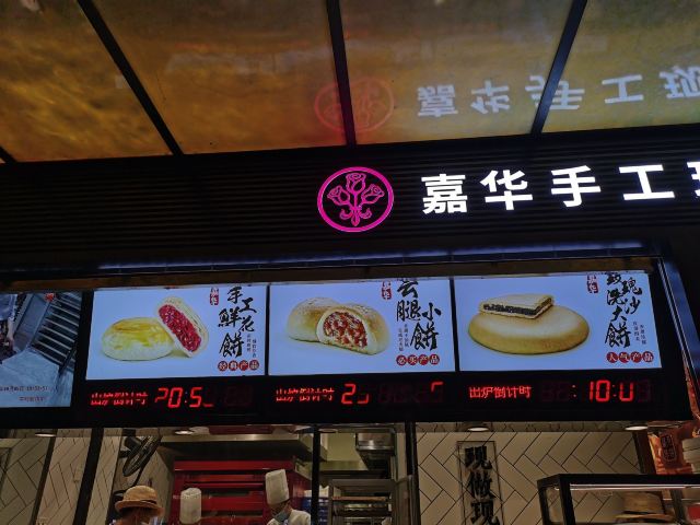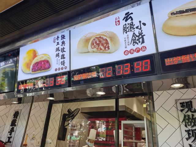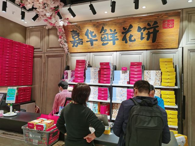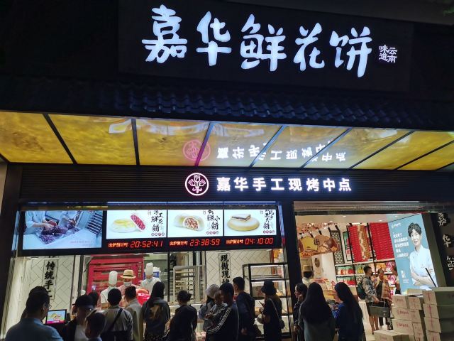 JIAHUAXIANHUABING前来尝试排名第一的嘉华鲜花饼,吃之前心想着一个玫瑰饼还能好吃到啥程度,吃完一口直接折服了,玫瑰饼一股玫瑰香直接涌入嘴中,玫瑰花瓣吃起来竟然那么上头,这甜味恰到好处,外面烤得正好酥酥的,也是非常讲功夫的,如果是刚烤出来趁热吃的话绝对是天堂的感觉了,云腿小饼外面饼是稍微有点硬的,里面是真正的火腿,对咸度的掌控也是炉火纯青,两只小小的饼直接降服我的胃,不得不说真的太赞了