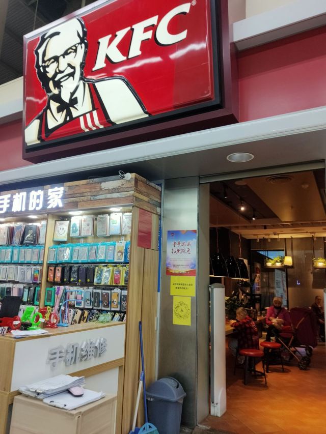 KFC (shanmu)就在会展中心对面和沃尔玛在一起,里面有个小门直接连到沃尔玛,还挺方便的,面积不大,不过人也不多,买完东西可以在这里休息一下