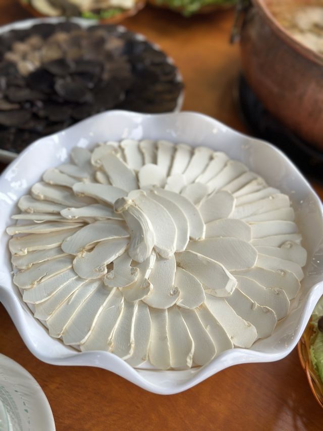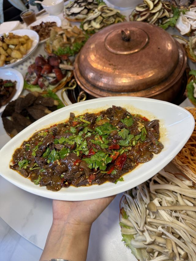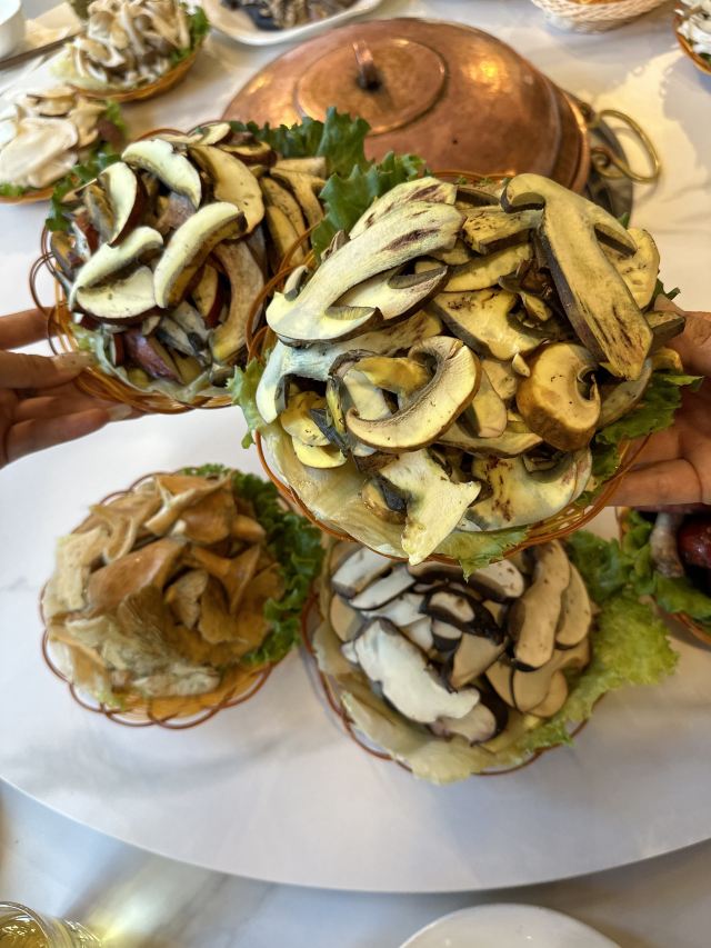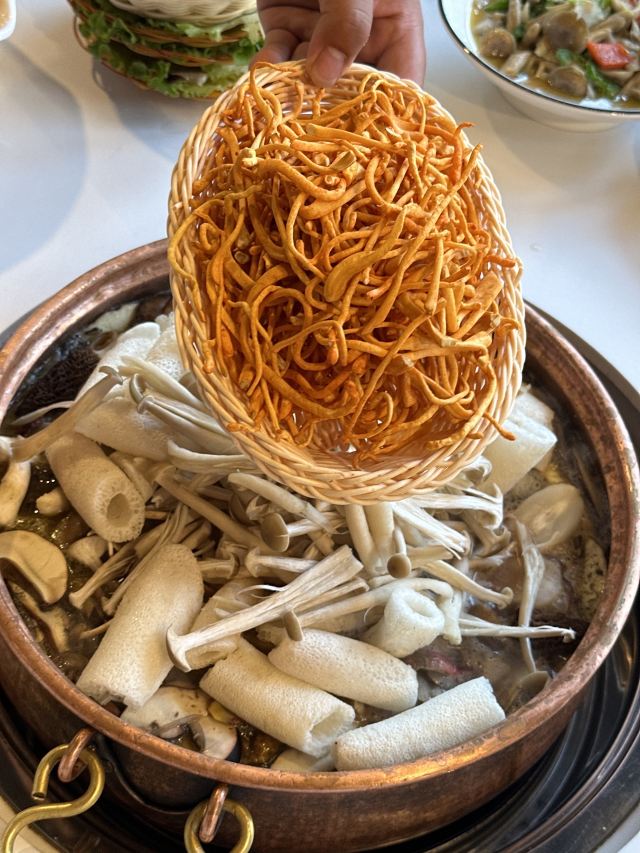 枇杷鹅,原味炒干巴菌,凉拌羊肉,老土鸡汤小锅,野生菌火锅,干巴菌炒饭,羊肚菌,菌汤,竹荪,松茸蒸饺,美味牛肝菌,松茸刺身,蚂蚁蛋酿羊肚菌,鸡枞菌