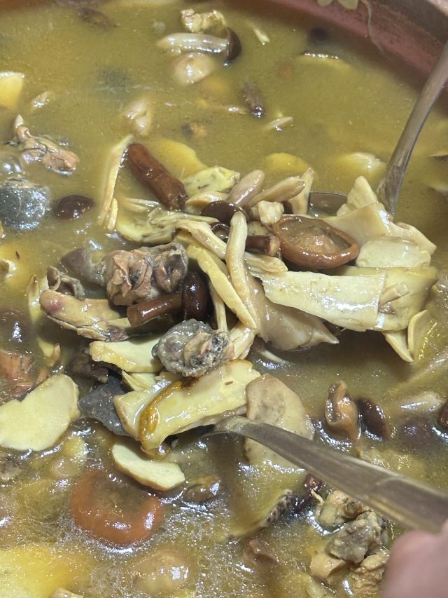云南人的夏天,怎么能没有野生菌?会吃懂吃的云南人,每年吃野生菌地方必有「菌海森林」 平时断🍚的人,都会忍不住来一碗干巴菌炒饭、用炒牛肝菌下碗米饭,接着用老火腿烩牛肝菌拌米线再吃一碗。 见手青、鸡枞、牛肝菌、谷熟菌、铜绿菌⋯各种菌子下锅后,等待计时器响~开盖喝汤吃菌,三碗菌汤下肚,可以再用菌汤泡碗饭~