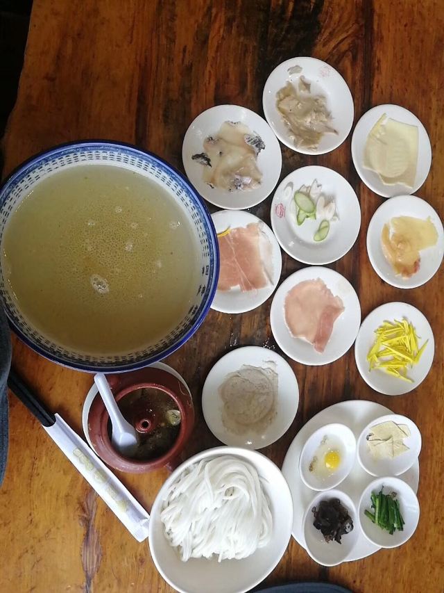 Qiao Xiang Yuan Rice Noodles实力网红店,来云南必吃的【过桥米线】14叠料一碗鸡肉一大碗鸡汤(真心烫,味道很不错) 有模有样的先荤后素再过桥(夹米线),最后诠释了下什么叫‘光盘行动’[机智]