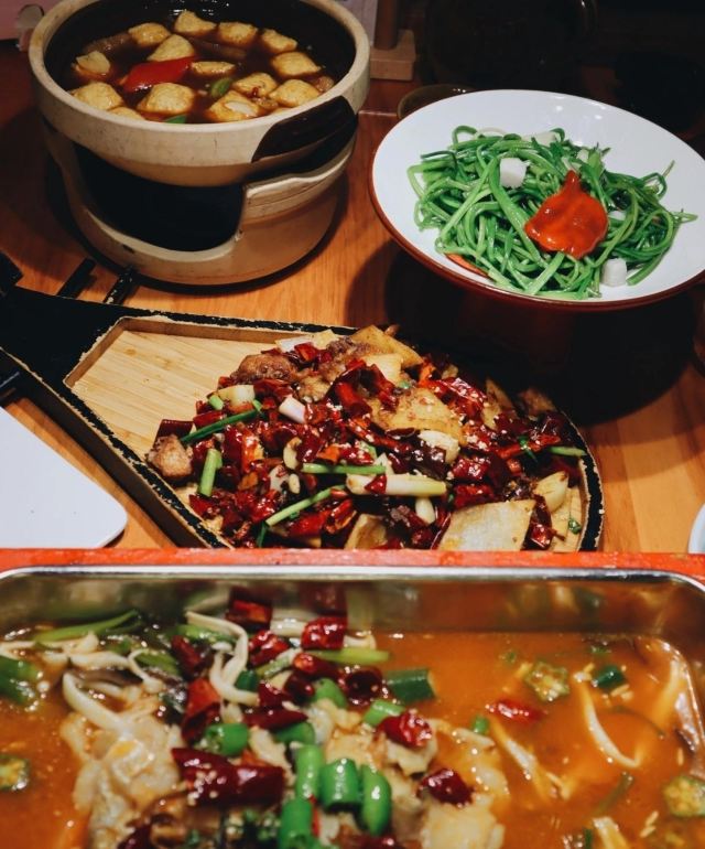 饵块鸡,水煮肉片,桑拿牛肉,蛋黄洋芋丝,苦菜酥绿豆,凉白肉,糊椒鱼,丸子汤,苦菜红豆酥,红豆汤,干煸洋芋丝,小炒肉,松鼠鱼,牛干巴,片皮鸭,傣味小拌,酱肉薄饼,饵块鸡和铁板豆腐,糊辣鱼,凉拌猪脚,酥红豆,凉米线,腌菜酥红豆,炒鲜奶,三鲜汤,饵块