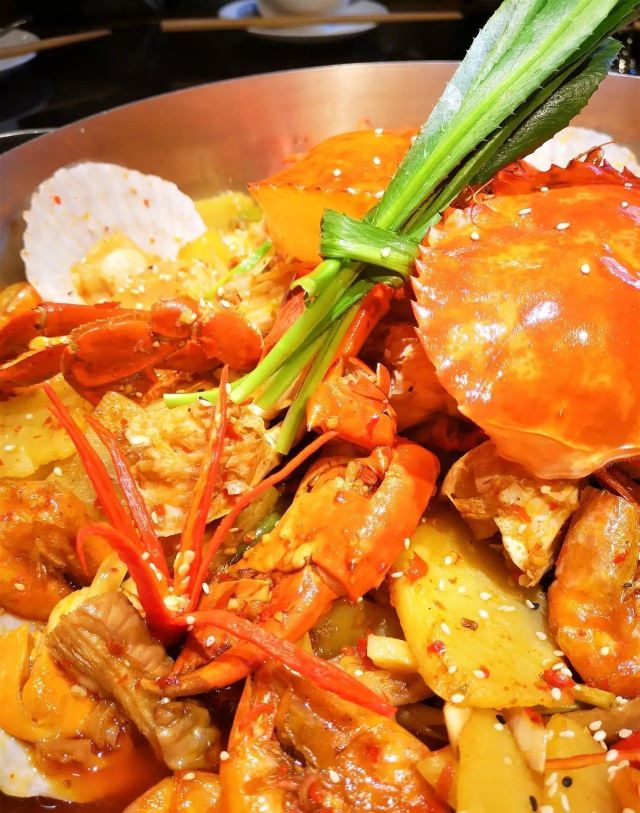 City Garden Café念念不忘的经典,陪伴我成长的这一锅酸汤,每次来都不忘喝上几碗才过瘾。好久没来,汤里加了荷包蛋,菜品的呈现方式也做了些调整,最为惊喜的是还吃到了干锅,虾、蟹、扇贝、洋芋……满满一大锅,看着就很有食欲。香辣的味道、过瘾的口感,没错,是我喜欢的味儿。在城市花园,泰式火锅和干锅同吃, 这种组合很完美~