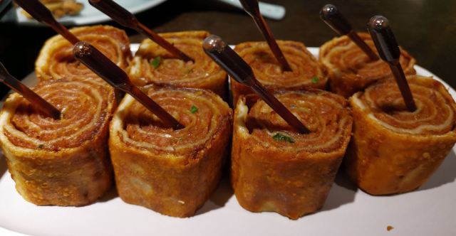 主打北京烤鸭的餐馆,开在恒隆广场里,装修精致优雅,早就听说它家的跳跳糖烤鸭有特色,必须来尝尝。 饭点人不多,烤鸭要等50分钟,实际半小时左右就上桌了。摆盘还不错,蘸料有好几种,鸭皮酥脆,不过很油腻,相比更贵的大董,翠园这些名店的出名,口感要差一点。 然而其它菜出品速度非常慢,客人不多的情况下,催了几次才来。|義和小肉饼^饼皮是夹生的,而且很硬,吃一半就剩下了!差评! 其它几个菜味道还可以,昆明好吃的北京烤鸭太少了,它家勉强及格吧。