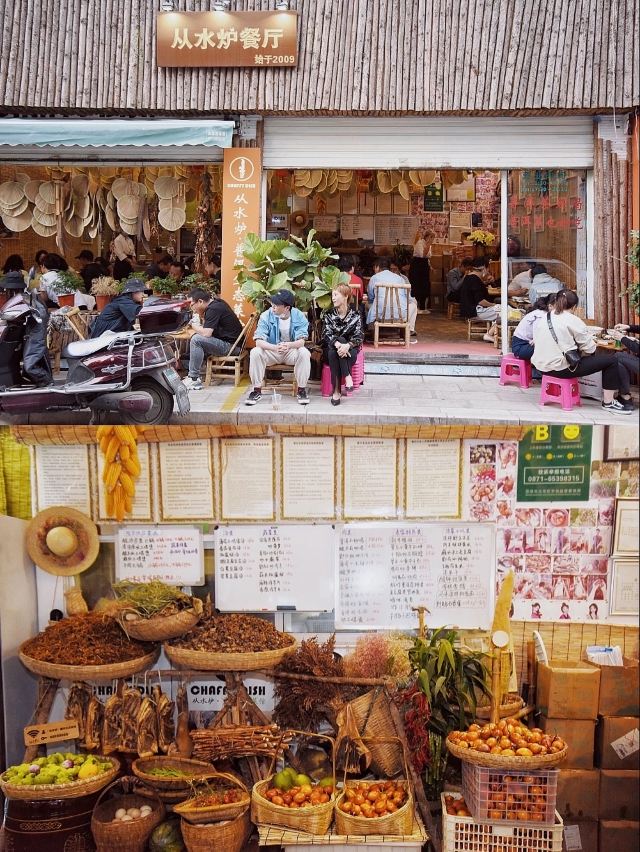CONG SHUI LU REFECTORY从水炉|本地重口味普洱民族菜! 🔥昆明本地爆火必吃 🍲重口味普洱民族菜 ———————————————— 🔮店铺名称: 从水炉普洱生态菜馆 📍坐标:昆明泰安富祥商城1楼B3B4 🚇交通:地铁2/6号线塘子巷站A口附近 💰人均:60元 🈺️营业时间:11:00-13:30,17:30-20:30 🪐推荐指数:🌟🌟🌟🌟🌟 ———————————————— ✔️重口味必点 本地朋友墙裂安利过来打卡,味道偏咸辣,非常下饭,我跟朋友两个妹纸人手两碗化身干饭人🍚!【喃咪烤鱼】外焦里嫩,非常入味,必点菜,【野佐料牛肉】这个菜绝就绝在野佐料,小米辣混合各种佐料,下饭利器!【油呛毛肚】重油爆炒毛肚超级爽脆,里面的糊辣椒🌶️也太香了吧!【野花冰稀饭🥣】冰冰爽爽可以当甜品吃! · ✔️民族普洱菜 店里布置很有民族特色,竹桌藤椅,进门展示架摆了很多地方特色食材,很多种类都没见过,看到一个圆圆的茄子是当地的野茄子,新鲜看得见!想去打卡的一定要趁早,排队很厉害,很多本地人都经常来吃,上菜很快,翻台率超高!人均💰60可以说是性价比超高的良心推荐了! • ✔ 💁♀️其他推荐打卡单品:『普洱炝黄喉』、『野茄子🍆炒土豆🥔』、『普洱小炒鸡』、『水性杨花』、『薄荷小米辣牛肉片』 ———————————————— 【OOTD】 👗连衣裙:FZPLAT设计师集合店TONGRI方领牛仔连衣裙 ⛓️项链:六号格饰品旗舰店六号格秋冬新款金属粗链条 ———————————————— 云南吃喝玩乐|云南旅游攻略|云南去哪玩|云南探店|云南打卡网红店|昆明成都必打卡|昆明探店|普洱菜|昆明美食|从水炉普洱生态菜馆