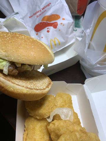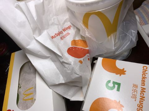 🍗隔一段时间就会想吃麦当劳🍔, 麦乐鸡翅、 麦乐鸡汉堡、 [糖果]味道都不错, [糖果]一口炸鸡一口可乐, [糖果]炸鸡配可乐真是绝配。 [糖果]油炸食品热量比较大, [糖果]餐后快步走一小时, [糖果]争取既解馋又不增重, 那就吃吃吃吧。