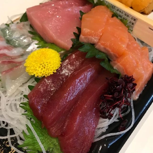 Miasmile在日本的最后一天,时间总是太匆匆,以致于连好好吃饭的时间都不够,到达黑门市场的时候只预留了半个小时来解决中饭。 基本没有过多思考就直奔黑门三平。当看到门口那么多的盒装即食寿司、刺身,内心简直乐开了花,既解决了时间仓促的问题,又能够吃到如此美食!如果堂食,消费税税率是10%,如果带走,消费税税率是8%。 我们还在挑选的时候,门口店员大叔居然和我们说起上海话,还帮我选了盒好的,哇塞,原来是上海人在日本,顿时又增加了好几分好感。 看到这一个个超级大颗的寿司、超级大片的刺身,感觉之前吃的都是假寿司。迫不及待打开食用,入口的那一瞬间,我真想说,这才是寿司啊!食材新鲜到爆炸,生鱼片口感无敌,软糯鲜嫩肥美,简直打开味蕾的新世界!一整个下肚,幸福感满溢!一整盒吃完,都不会有任何边际效益递减的效应,反而越吃越想吃啊!太赞了! 真的后悔没有多买啊,我一定一定一定会再来的!