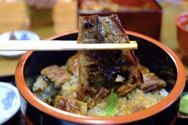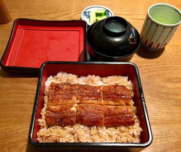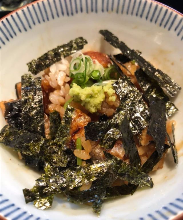 Honke Shibato本家柴藤这家鳗鱼饭!当时看到这家百年老店有不少人推荐,据说已经是第十五代了,历史非常悠久!我们是中午去的,所以没有预约也有位置,想晚上去的最好预约哦。因为是现点现烤,下单后要等20-30分钟。 大阪烤鳗鱼盖饭(中份)4120日元(约254人民币),別看他只有上面四块烤鳗,其实饭的中间还有另外四块,份量一点都不少!鳗鱼色泽艳丽,口感很嫩,一点骨头都没有,烤得很入味。米饭也特别好吃,饭粒分明QQ的,非常美味了~柴藤烤鳗三吃套餐(小份)3120日元(约191人民币),这个就是鳗鱼三吃:直接吃、加入紫菜、芥末、葱后吃以及在第二种吃法上再加入茶泡饭!这些吃法让口感更加丰富了,而且还能缓解酱的腻。