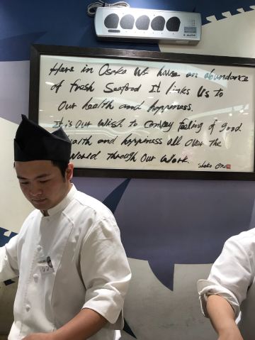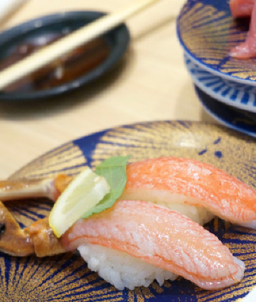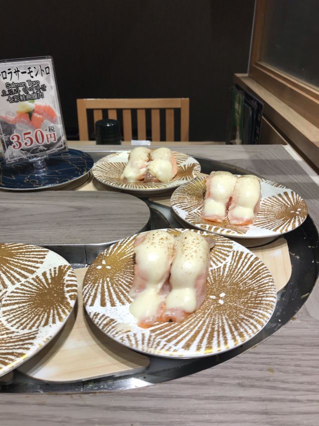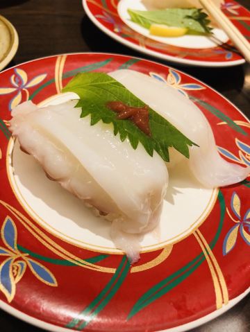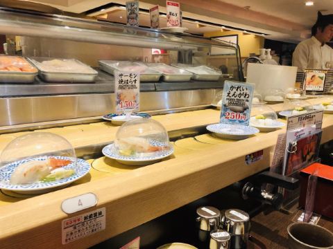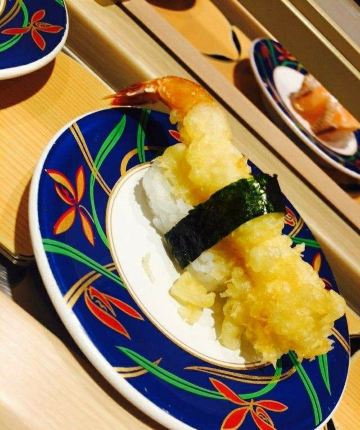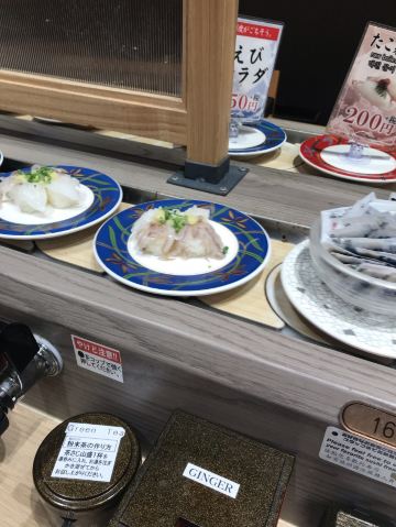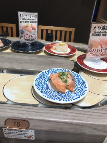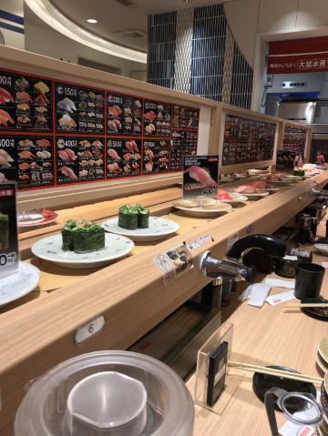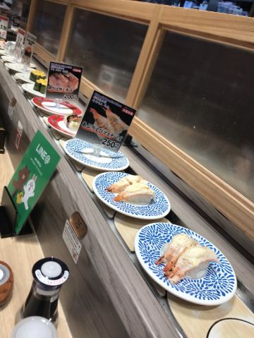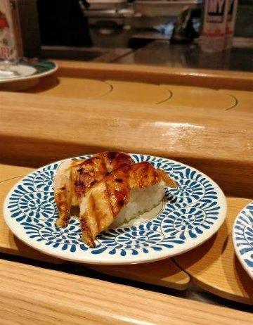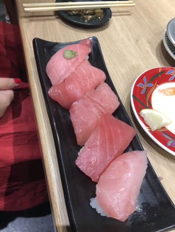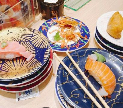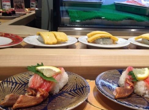 以鱼生和寿司为主的连锁店,主要就是食材新鲜,寿司个头也挺大,米饭上的鱼类贝类都肉质肥美,吃在嘴里很顺滑。 店里干净整洁,吧台位置一直最受欢迎,有什么需要可直接向料理师提出。价格是按照盘子的颜色而变化的,从100日元到500日元一盘都有,基本一盘两个寿司。推荐鳗鱼寿司、鲸鱼肉寿司。
