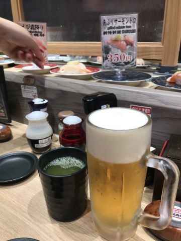回转寿司,实在不知道如何选择吃什么,不管一人食还是几人,都会给你不错的体验。这家店也是连锁,寿司品种很多,上的也很快,啤酒是朝日的,非常的清爽,其实吃回转寿司可以慢慢的吃,有时候就会慢慢的吃多了!