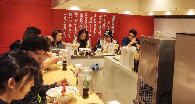 Doutomborikamukura大名鼎鼎的神座拉面馆,趁早上人少过来尝尝。在门口排队时直接点餐,入座后小票给服务员。日式这种围座的方式,空间很小,带着大包小包都没地方放。面的味道很一般,虽然看四周墙上许多名人来吃过,但我还是习惯咱兰州拉面。