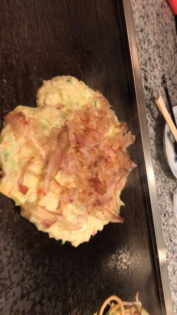 Okonomiyaki Mizuno这家店连续5年米其林推荐,去日本前就收藏好啦 地点:在大阪的道顿屈 远远的就看到长长的队伍,我们排过去之后,店员在我们后面放了禁止排队的牌子!真的是lucky啊~ 坐下的时候已经快饿疯了,迅速点了带子拼豚肉的大阪烧和海鲜炒面。 师傅会在你面前的铁板做,还会留时间给你拍照,yasashi~~ 两个都是料足,味道赞!!!推荐啊,排队都值得。