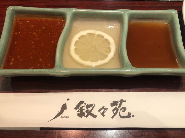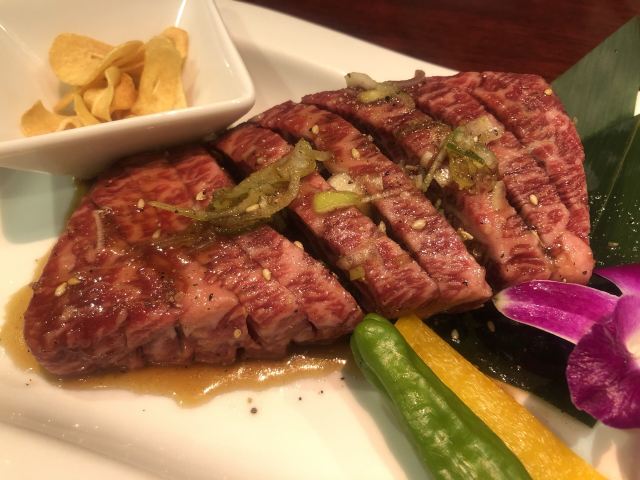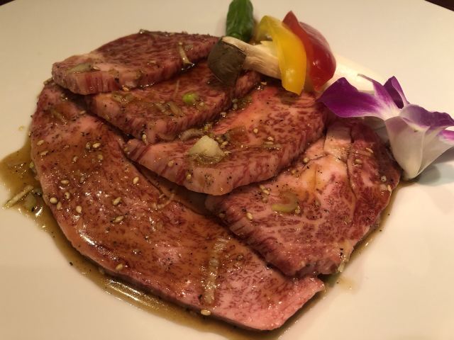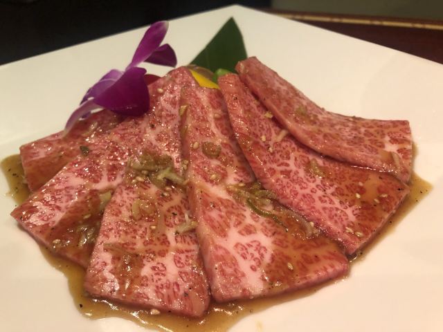 这是位于银座的高端韩式烤牛肉店,都是独立房间,一面墙是半透明的印花玻璃。牛舌和牛筋肉质肥美香甜,特别是各式搭配的酱料,独具匠心。