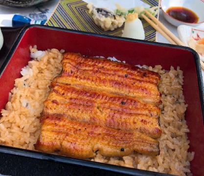 鳗鱼饭,鳗鱼蛋卷,炸鳗鱼骨,柚子冰淇淋,豆腐,胡椒烤鸡,鳗鱼鸡蛋卷,鳗鱼前菜