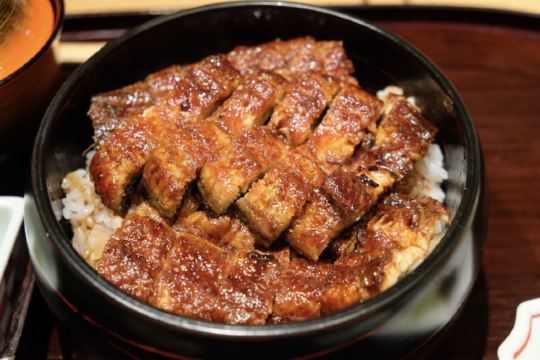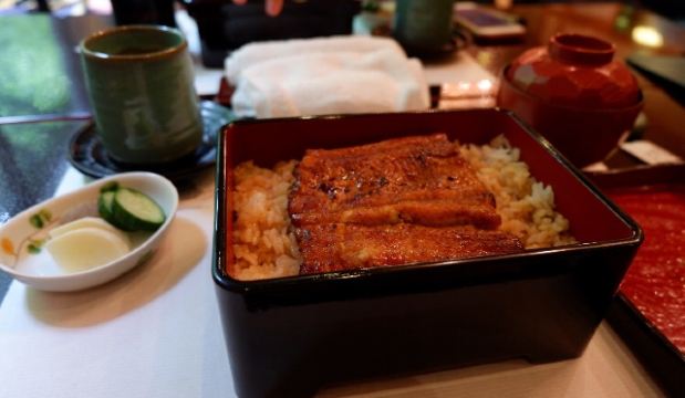 备长名古屋鳗鱼饭 (东京天空树店) 因为我们是晚上八点多到的,所以不用排队。它的鳗鱼饭最少可以点0.75条,最多2.5条,我们点1条的是313人民币,分量也蛮多的,可以三吃(直接吃、加葱和紫菜还有茶泡饭)。鳗鱼肉质鲜嫩肥美,表皮烤得微脆,没有骨头没有腥味。它的米饭特别好吃,饭粒很饱满,拌着鳗鱼汁就能吃一大碗。 然后我们还点了份鳗鱼玉子烧99,还挺贵的,蛋卷很厚实很嫩,吃一块刚刚好。