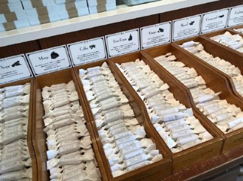 座落在表参道KIDDY LAND旁边巷子里的NUMBER SUGAR牛奶糖,这可以这几年非常火红的一家伴手礼名店。这家在表参道巷弄内的文青风小店,专卖焦糖牛奶糖,一共有12种口味,分别用号码代表,辨识度高、没有挑选上的障碍。1~12口味分别是:1.香草、2.海盐、3.肉桂&茶、4.巧克力、5.覆盆子、6.橙皮、7.杏仁、8.姜、9.莱姆酒葡萄干、10.咖啡、11.芒果、12.黑糖。可以选择自己喜欢的口味在开架式的展售柜选购。