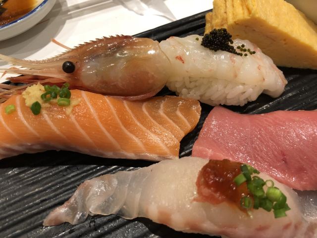 Sushi no Midori网上搜到这家网红店,据说排队几小时,那天却是运气好,拿了号不到两分钟就给了一个吧台的位置:正合我心,师傅就在面前做给我看。 人气很旺,本地人不少,也还有拖了行李箱来的,还有路过进来打包带走的,还有吃完了再额外要一个什么打包带走的,说明它的品质的确是不错的。 桌子上就有菜单,想好了就示意吧台里的师傅,他会停下来手里的活,拿一个小机器给你点,然后寿司部分就是他来负责做,饮料和其它由服务员端过来。结帐的时候也是,管师傅要单子,再去门口结。这一个师傅管着面前的几个位置,我们用餐的时候,是5组客人,工作效率也是杠杠的,顶俩。 动作很快,等我观察完店里,面前就来了一小盘寿司,硕大的鱼生完全盖住了下面的米饭,第一口选了一个金枪鱼的,OMG,入口即化的鱼片,劲道淡香的米饭,简直太好吃了!要了一个当季拼盘,内容非常丰富,每一个都尝一口,都很不错。 这拼盘图上是画了一个盘子,其实是上了三盘儿才上完,然而我还单点了一份三文鱼一份金枪鱼还有一个蟹肉沙拉(这个建议不要点,因为量大偏咸而且套餐里有),这几个在套餐里都有,所以就最后就完全是点多了,吃撑了的状态。 价格超值,最后结帐非常吉利的数字:6688. 完美的寿司体验。