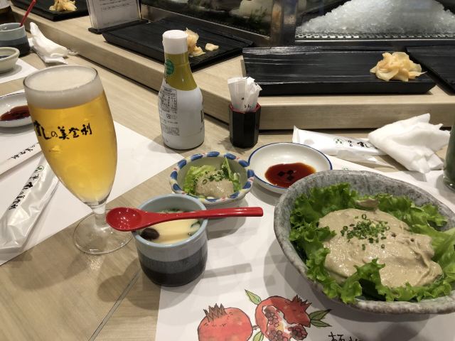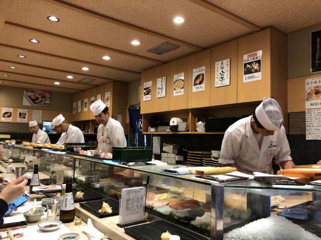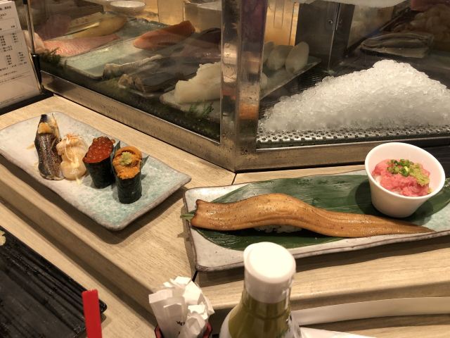Florafifle网上搜到这家网红店,据说排队几小时,那天却是运气好,拿了号不到两分钟就给了一个吧台的位置:正合我心,师傅就在面前做给我看。 人气很旺,本地人不少,也还有拖了行李箱来的,还有路过进来打包带走的,还有吃完了再额外要一个什么打包带走的,说明它的品质的确是不错的。 桌子上就有菜单,想好了就示意吧台里的师傅,他会停下来手里的活,拿一个小机器给你点,然后寿司部分就是他来负责做,饮料和其它由服务员端过来。结帐的时候也是,管师傅要单子,再去门口结。这一个师傅管着面前的几个位置,我们用餐的时候,是5组客人,工作效率也是杠杠的,顶俩。 动作很快,等我观察完店里,面前就来了一小盘寿司,硕大的鱼生完全盖住了下面的米饭,第一口选了一个金枪鱼的,OMG,入口即化的鱼片,劲道淡香的米饭,简直太好吃了!要了一个当季拼盘,内容非常丰富,每一个都尝一口,都很不错。 这拼盘图上是画了一个盘子,其实是上了三盘儿才上完,然而我还单点了一份三文鱼一份金枪鱼还有一个蟹肉沙拉(这个建议不要点,因为量大偏咸而且套餐里有),这几个在套餐里都有,所以就最后就完全是点多了,吃撑了的状态。 价格超值,最后结帐非常吉利的数字:6688. 完美的寿司体验。