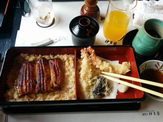 鳗鱼饭,幕内便当,酱烤鳗鱼饭天妇罗套餐,白烤鳗鱼,鳗鱼肝清汤,鳗鱼饭 竹,白鳗鱼,鳗重 竹,唐扬鸡肉,白烧鳗鱼,鳗鱼玉子烧,蟹肉沙拉,烤银杏,刺身