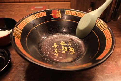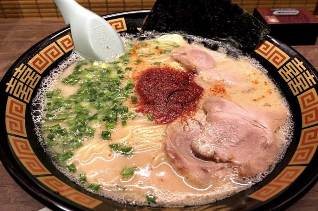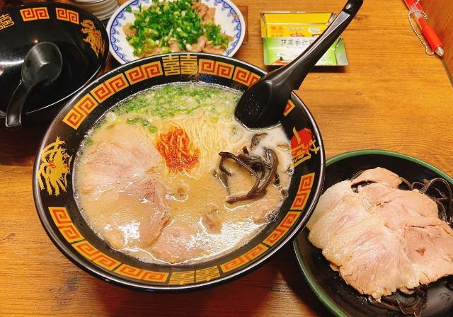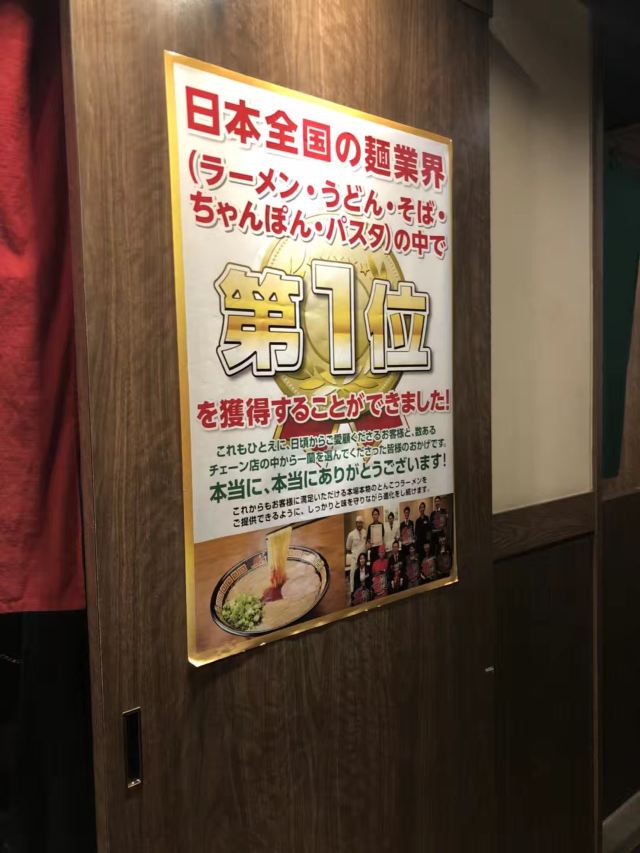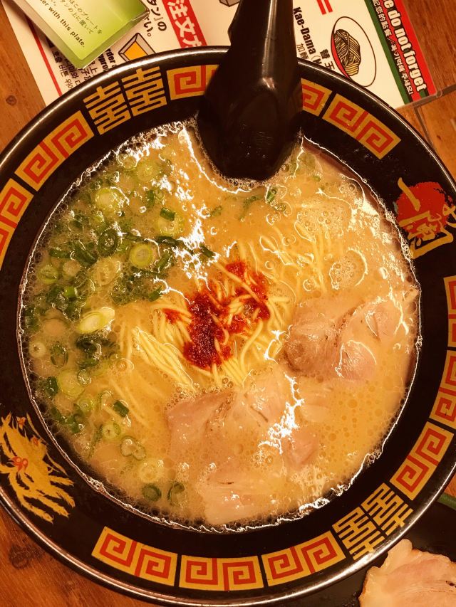 起源于九州,是博多拉面的一种,也是当地豚骨拉面的代表,蔡澜强力推荐的一家拉面店,在店里可以经常撞见明星哦。这里拥有“一个人也可以吃拉面”和“专心吃面”的拉面文化,与众不同的小隔间设计,你在帘子这头吃面,厨师在另一头制作拉面,私密性很好,单身人士就餐的福地。 备有各种语言的菜单,上面分类详细到拉面的份量、软硬程度、汤底浓度等等,十分贴心。每个人的桌子上有杯子,可以自助接水。这里的拉面汤头浓郁,面身筋道,吃完拉面一定要大口喝掉汤,碗底会有惊喜。