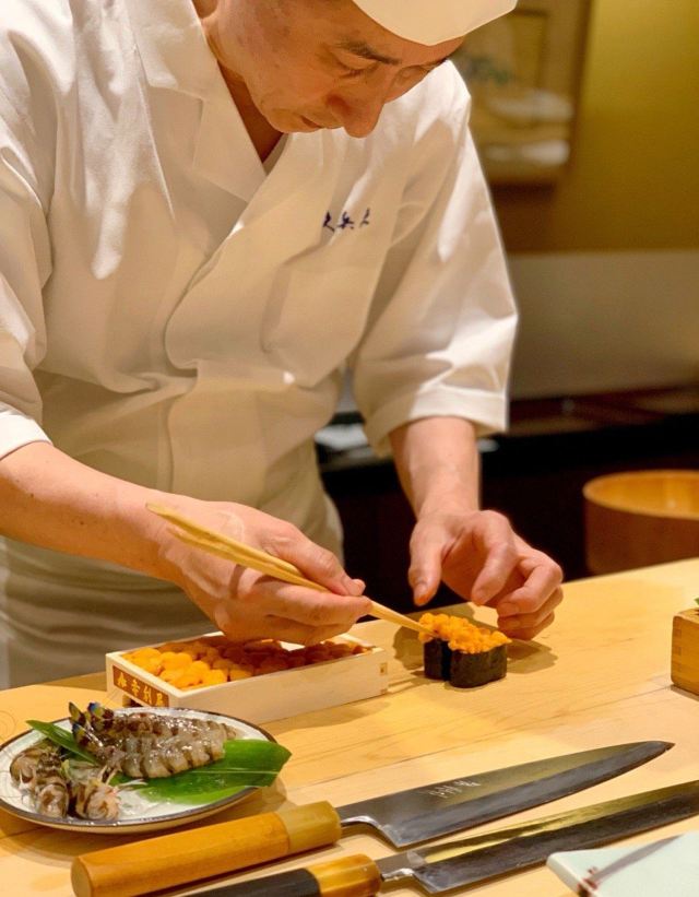 慢樱花银座寿司名店,米其林一星餐厅久兵衛自1935年创业以来,即坚持着地道江户前寿司的味道,是东京最具代表性的寿司店之一,更曾被《福布斯》选为全球最贵寿司店。据说,坊间流传着“筑地最好的食材要送到久兵卫”的传言,在这里,无论点哪一款寿司似乎都像在证明着传言中的真实美味。