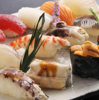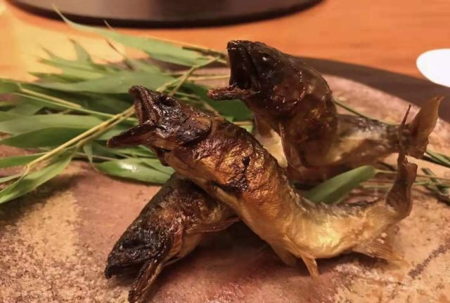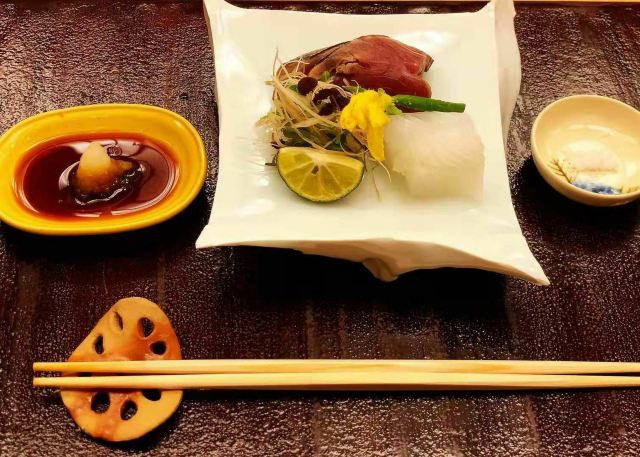 鳗鱼饭,墨鱼汁鲍鱼,松枝熏烤香鱼配黑啤,烤小鲫鱼,神户牛肉,烤鳗鱼,鲍鱼天妇罗, 怀石料理,天妇罗