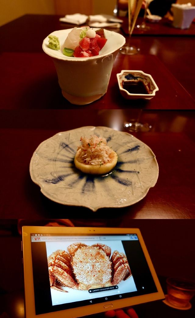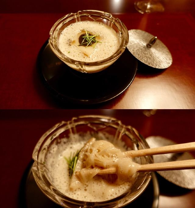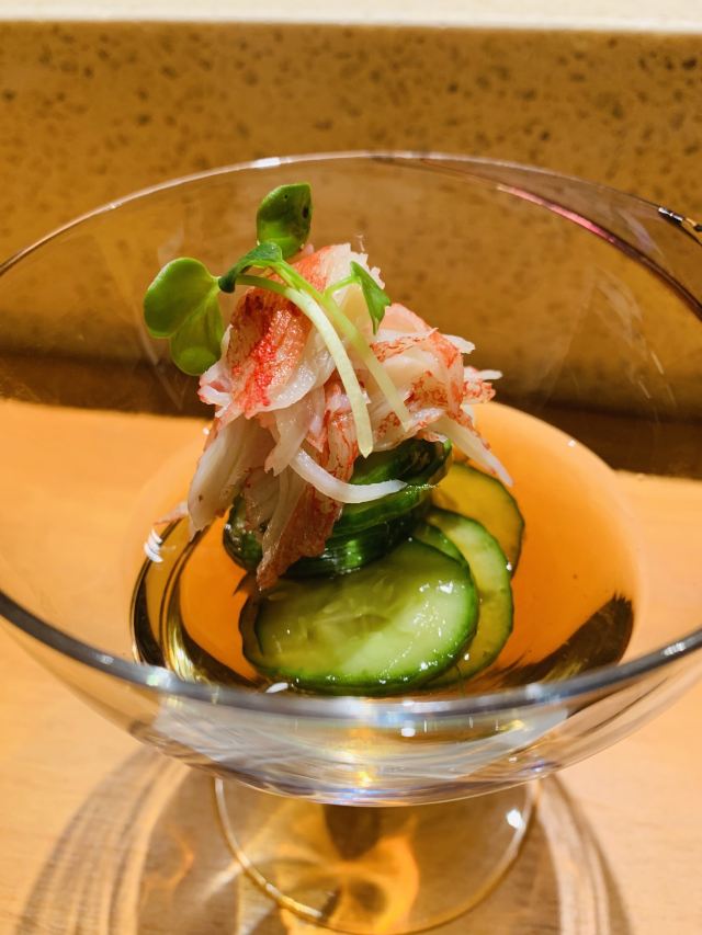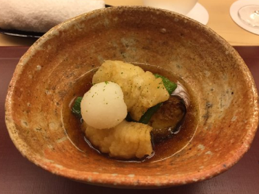 没有蜡olling这次来东京很匆忙,没有预定到“龙吟”以及“青柳”等餐厅,但却意外地订到“银座小十”的包间。 “银座小十”位于银座一座大厦的四层,是携程美食林二星、米其林二星餐厅。主厨奥田透与“龙吟”的山本征治同属德岛料亭“青柳”的小山裕久门下的三大高徒,店名来源于主厨的朋友陶艺家西冈小十,所以餐厅内有很多西冈小十的陶艺作品。 银座小十没有菜单,根据当日食材制作,套餐价格是28000日元,酒水另算,从第一道毛豆冷汤开始,我就喜欢上这里,菜的风格整体清淡而注重食材的本味,恰到好处的形式感都是为内容服务的。纤尘不染的鲣鱼清汤中炭烤鲷鱼的烟熏味就如同陶艺家的作品:人为的残缺和不规则是为了打破常规和完美,在“自然”的状态中呈现生机和循环。 银座小十的食材非常考究,随便一个鸡蛋也可以跟我们讲半天,而且常常有可遇不可求的食材,比如今天就遇到10年野生的鳗鱼。 为我们服务的日本大姐怕我们不知道她说的是啥,所以每讲述到特别的食材都打开Ipad给我们看图片,一边看着生前的大鲷鱼,一边吃着碗中的碳烤鲷鱼,这感觉,还真是五味杂陈[捂脸]