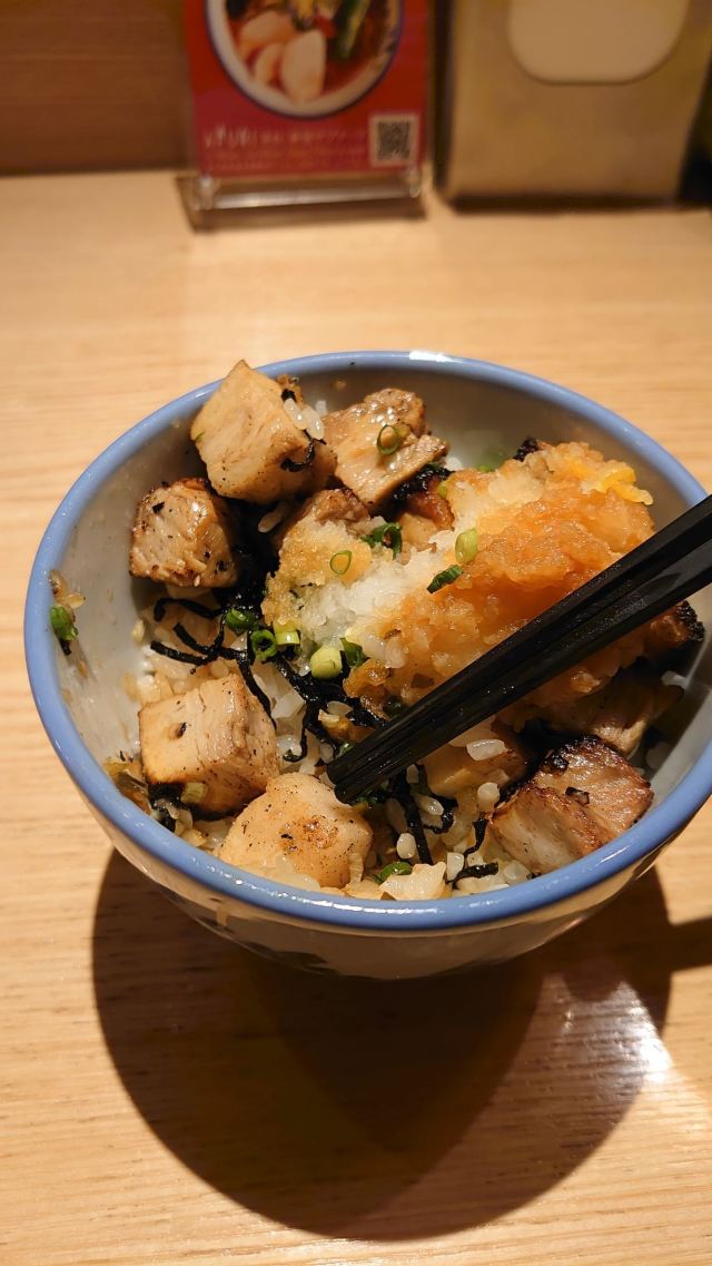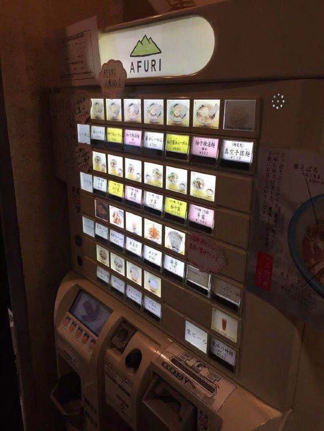 汤头里有淡淡的柚子香气,这是阿夫利最具特色的地方了。汤头可选淡麗(清淡)或まろ味(浓厚),都有基本的鸡汤、昆布、野菜,搭配细面、炭烤厚叉烧、半熟蛋等丰富配料,口味清爽,柚子香味一直会留在口中。吧台前有个小烤炉,这里的叉烧是用炭火烤的,火候把握的很好,自然口味佳。店外有自动贩卖机买面票,店里座位不算多,营业到深夜,来这吃夜宵也是相当不错的呢。