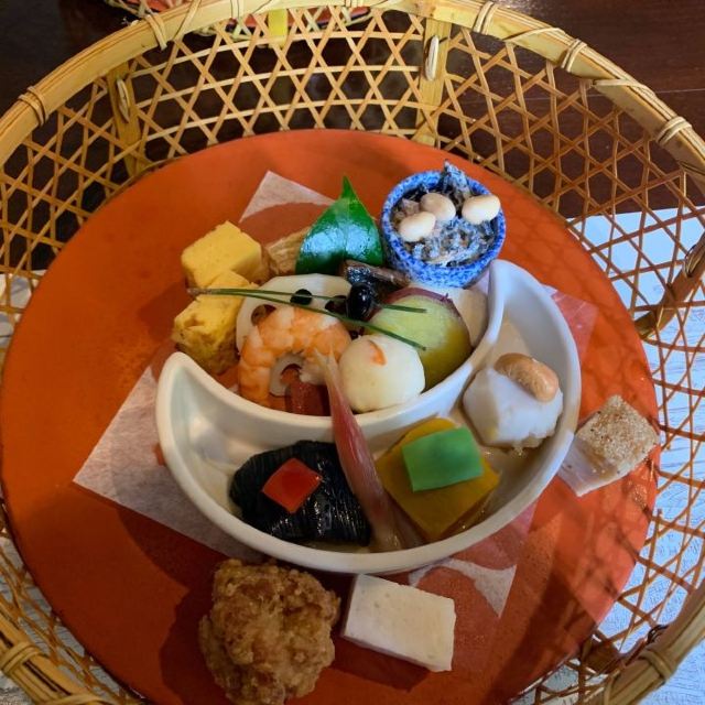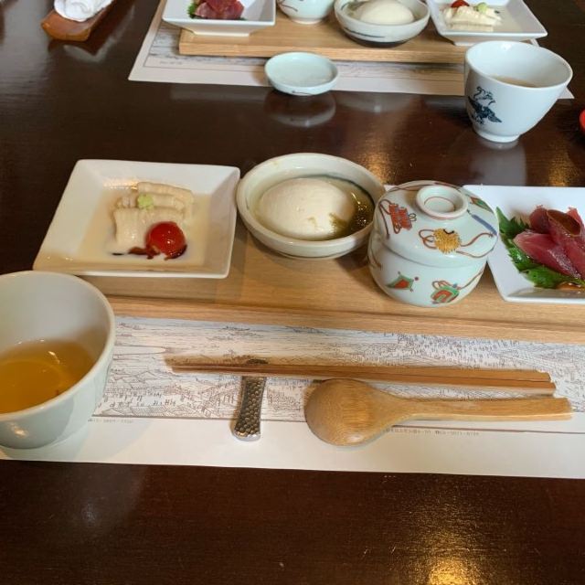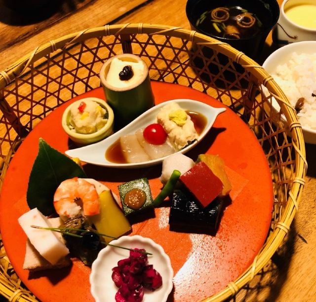 甜点,一之膳刺身、茶碗蒸、豆腐、豆皮,主食豆饭、味增汤,二之膳花籠料理,火爆辣鸡香蒜披萨,时令小菜,怀石豆腐料理,烤鸡翅,三文鱼饭,冰淇淋