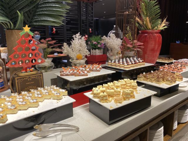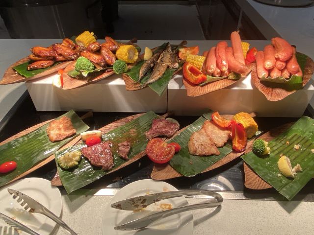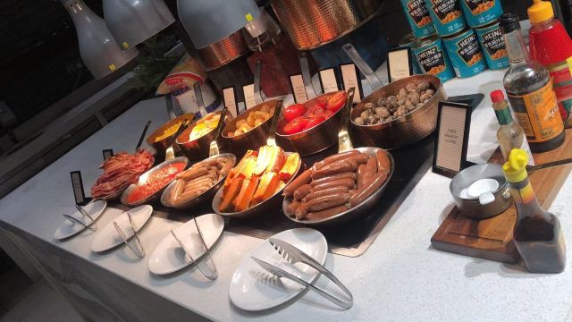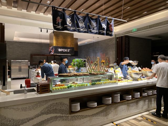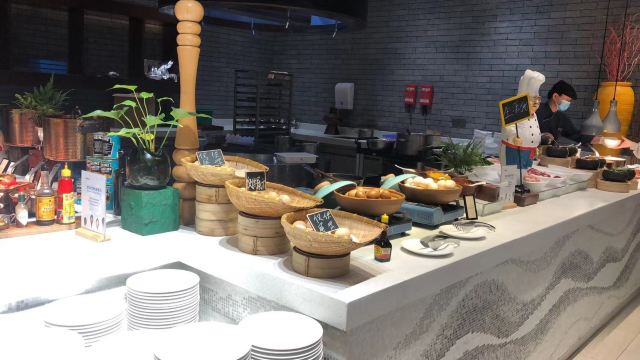 去惠州龙门旅游,住在了富力希尔顿度假酒店,晚上在酒店的西餐厅吃了一顿自助晚餐,早上也在这里吃了自助早餐。餐厅位于酒店的负一层,目前是有限制用餐人数的,晚餐238元/位,还不算很多人吃,大厅用餐区基本坐满的样子,当时没有什么美食节之类的,就是普通的自助餐,但是品种种类还不错,而且一直源源不断有供应。 食品方面还可以,有不少当地的特色菜品,例如:紫苏鸭、炒米粉等,还有现煮的龙趸鱼汤,有红酒、啤酒、雪糕、果汁,扒类也有很多,刺身档里有希鲮鱼、八爪鱼、吞拿鱼,没有了三文鱼。用餐环境也不错,服务员收拾桌子、空碟子速度很快。 早餐就恐怖了,人多得厉害,尽管已经是有所限制人数了,看到门口有排长队等待进餐厅的场景,但是餐厅里面已经有的人也吓死人。每一个食物档都要排长队,煮粉面的要等、煮粥的要等、榨蔬果汁的要等、咖啡机前面也在等,最后我只能够拿一些现成的食物,例如:西式、中式包点、春卷、油条之类的,选择变少了。
