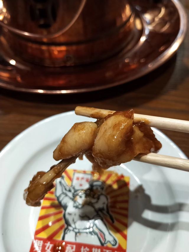 下酒香酥油渣,这家店很喜欢用小酒组词做菜名呐,这盘油渣的量真的是蛮多,配上青椒红椒所以辣度基本没有,油酥内软,不是炸的特别干的类型,咀嚼之后油在嘴巴里蔓延,香而不腻。