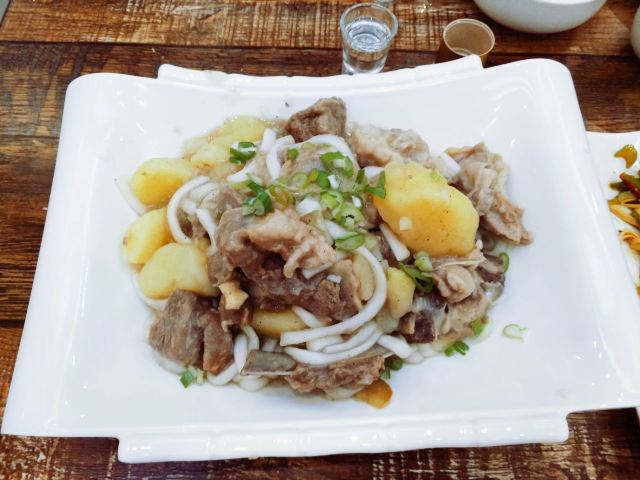 蒸饺味道不错,不过应该不是手工包的,肉挺多,吃的酸菜,土豆的,挺好的。锅包肉很正宗,纯瘦肉,酸甜适口,非常好吃,不过凉拌莜面还有待改进,有点咸,面有点粘,总体不错