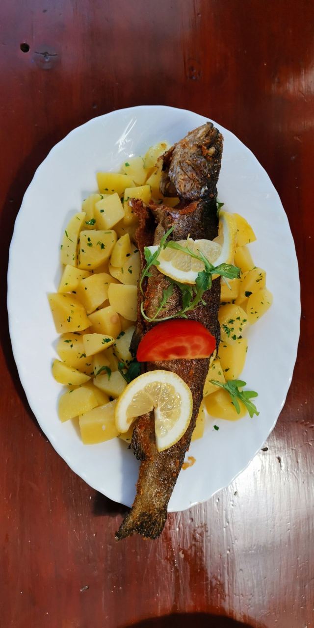 旅游度假这里服务员英文有限,菜单倒是有英文。有一个长像颇似斯大林的老先生坐镇指挥,一个小伙子烤鱼,2个服务生。菜式是典型的匈牙利式,因为在巴拉顿湖畔,我们主要点了鱼,鱼汤味道醇厚,烤红鳟鱼新鲜。这里只收现金哦,欧元现金也可以。
