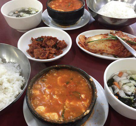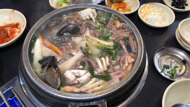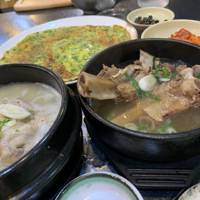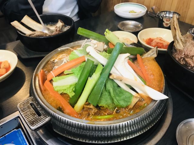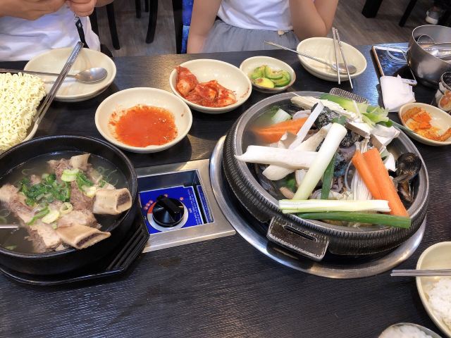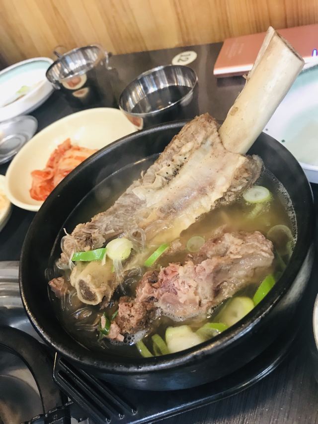 yeon-dong-bon-ga当地妹子推荐的一家餐厅,说评价不错。我们吃了几天烤肉确实有点腻了,就去尝尝新东西。排骨汤,土豆炖排骨,还有韭菜饼,都好好吃。排骨汤清淡但是有滋味,炖排骨就是浓浓的韩式风味,喜欢!
