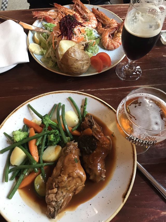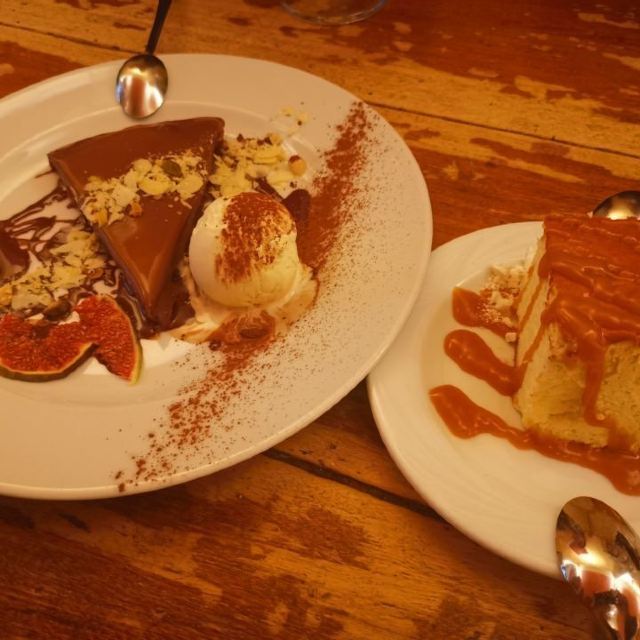 炖牛肉和炖兔肉都不错,属于当地比较有名的饭店,要了啤酒,主食,还有蛋糕,蛋糕做的就像艺术品,上面的巧克力酱很好吃,属于比利时特色。