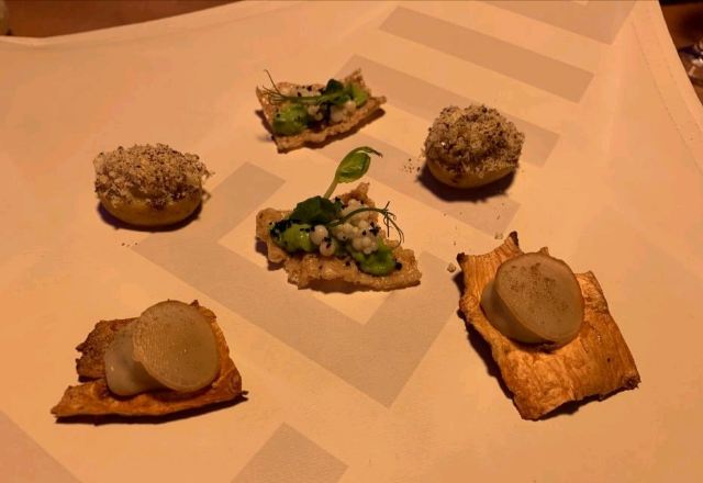 合作平台用户菜单非常棒。我们点了一份素食和一份普通的,它们惊人地相似(只有三道菜不同),这证明餐厅非常重视素食。每道菜的解释都很好,包括与历史菜肴的联系以及当地产品的现代重新诠释。总体来说,是一次很好的体验。位置有些奇怪,因为这个地方在商业区,周围没有你期望的繁华氛围,但在场所内部,非常愉快。