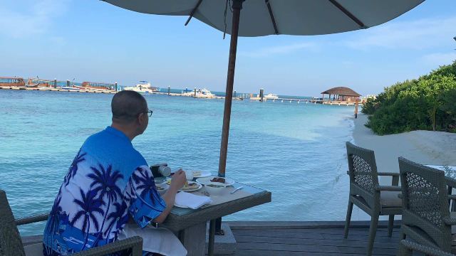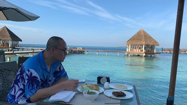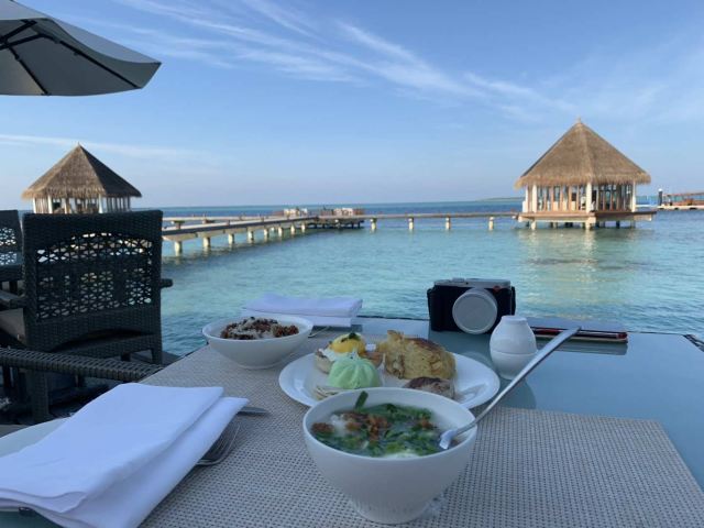 对于我来说,世界上最幸福的事情就是欣赏着美丽景色,边品尝着美食,我们就坐在这个舒服的位置,我们吃着好吃的美食,看着满眼的大海,也确实心旷神怡呀。