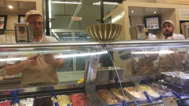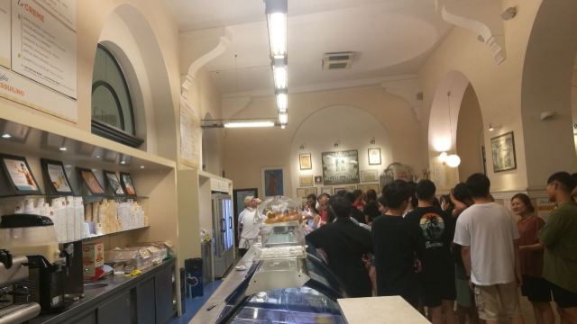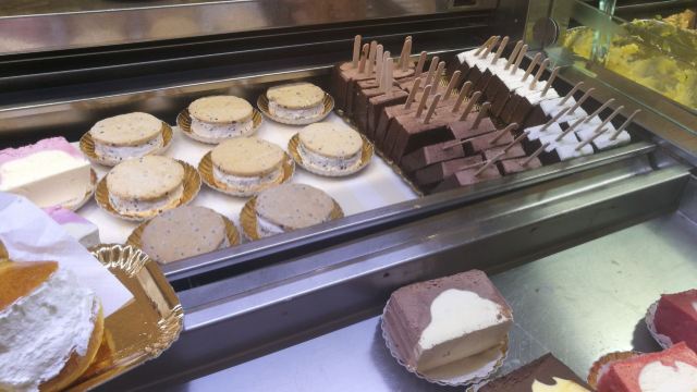 始于1880年的意大利冰淇淋老店,常常大排长龙。早在开店之初就给欧洲各地的有钱人家派送冰淇淋。店内展示曾经的制作工具等等,充满历史感。 进店后首先选择盒装还是筒装,然后选择几个球,再选择口味。冰淇淋口味就有三四十种之多,店家更是选用新鲜而优质的原料,保证每款冰激凌都低糖低脂,价格更是非常便宜,1.6欧一个球,2欧两个球,3欧三个球。