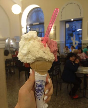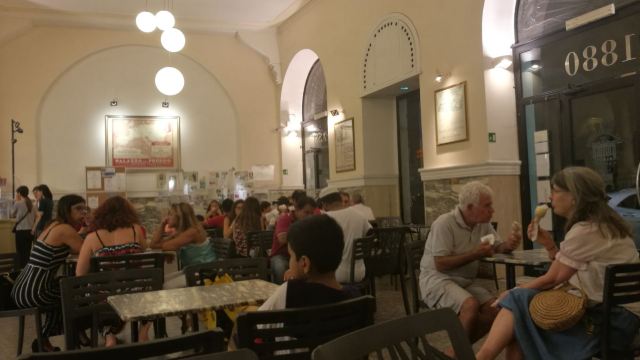 非常惊喜!强烈推荐! 通常罗马的gelato都要2-2.5欧,他们家只要1.6欧,还是满满的双球,3球也才2欧!口味多到让人犯选择症,味道是极好的,而且健康低脂。 这家是1880年创建的百年老店,店堂宽敞大气,装饰古典,虽然宾客络绎不绝,还是能坐到位子,可以安安心心地品味冰淇淋的美味。 店内还贴心地设有厕所和饮用水供应,这在罗马很罕见了。 地点离中央车站2站路,可以坐5路、71路到Principe Eugnio,周边不少中国人开的服装小店。