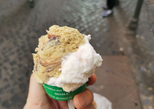 Giolitti是罗马一家老字号冰淇淋店,店铺就位于万神殿和许愿池的中间。据说是赫本吃过的冰淇淋店哦。这家店有三间房,左边是咖啡室,右边外面的大间卖糕点,里面的小间是冰激凌柜台。 冰淇淋甜筒可以选3种口味,分量十足。最佳吃法是要在冰淇淋上加上鲜奶油。