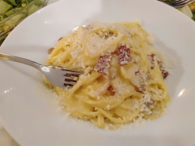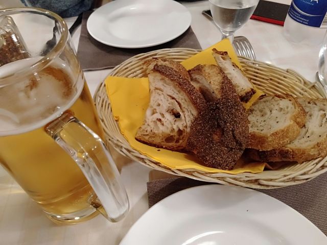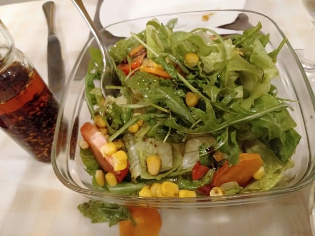 晚上在罗马帝国的城里逛夜景,刚好路过这家店,被这里广告上展示的pasta图片吸引,整好也想休息一下,于是一杯小酒,配上一盘沙拉,再叫上一个店里厨师特别推荐的pasta,果然不一样,重要的是只会两句中文的服务员每次路过我们的桌旁,都要说句你好,谢谢