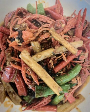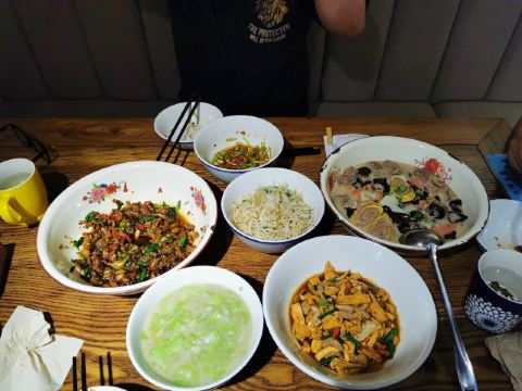摆渡修行这家的辣味菜做的真的是不错,上次又去的时候,拉上了韩国妹子,喜辣的她吃的那个叫一个欢啊! 凉菜中的擂辣椒皮蛋茄子超入味。 吐槽煎饺都破啦,不过馅还是不错的。红油抄手都被韩国朋友&朋友给吃光了,以后吃饭要开始靠抢了吗? 最辣的是大盘BT鸡,一开始真的是吃到舌头都麻了。 朋友特喜欢尖椒牛肉(好像叫这个名儿),比之前点的土豆牛肉更好吃。 总算是吃到去鱼皮不腥且大块的酸菜鱼了,酸菜真棒,配上汤后吃掉了很多饭,说好的晚饭少吃米饭,全给给抛到脑后了。 面包糠炸虾,这不辣的菜就有点一般了。 外卖的时候还叫过酸汤肥牛,2大碗的量,酸辣味汤配肥牛嫩片,拌饭太爽啦。还点过开心花甲,量和其它家比有点少,底下的粉丝到是很多,感觉这道的价格有点高了。