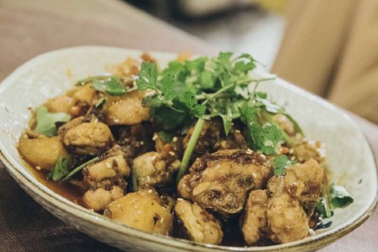 Mao Hunan Restaurant这家的辣味菜做的真的是不错,上次又去的时候,拉上了韩国妹子,喜辣的她吃的那个叫一个欢啊! 凉菜中的擂辣椒皮蛋茄子超入味。 吐槽煎饺都破啦,不过馅还是不错的。红油抄手都被韩国朋友&朋友给吃光了,以后吃饭要开始靠抢了吗? 最辣的是大盘BT鸡,一开始真的是吃到舌头都麻了。 朋友特喜欢尖椒牛肉(好像叫这个名儿),比之前点的土豆牛肉更好吃。 总算是吃到去鱼皮不腥且大块的酸菜鱼了,酸菜真棒,配上汤后吃掉了很多饭,说好的晚饭少吃米饭,全给给抛到脑后了。 面包糠炸虾,这不辣的菜就有点一般了。 外卖的时候还叫过酸汤肥牛,2大碗的量,酸辣味汤配肥牛嫩片,拌饭太爽啦。还点过开心花甲,量和其它家比有点少,底下的粉丝到是很多,感觉这道的价格有点高了。