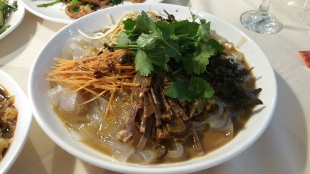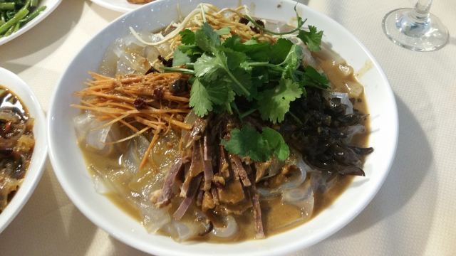 很不错的一家东北菜,服务员都很友好,味道很好,大厨很会烧菜,凉皮很q,海蜇,鱿鱼都很好吃。就可以有点偏僻然后没有地铁,只能坐公交才能到而且还要步行,可以说只有开车去最方便,还好门口很多停车位。