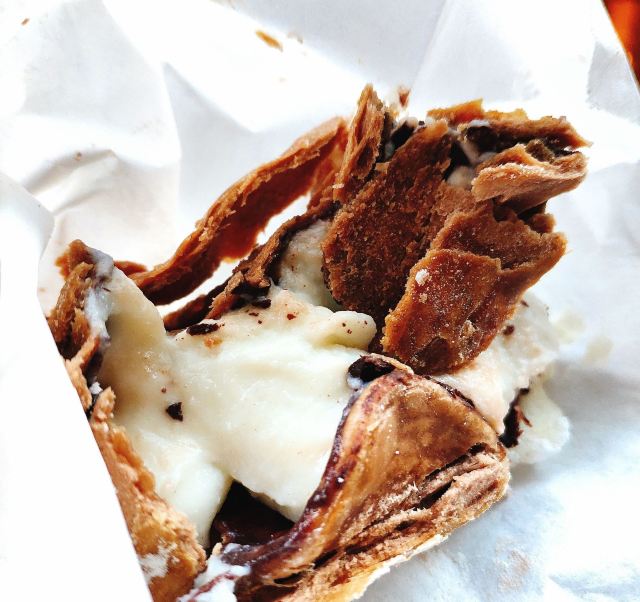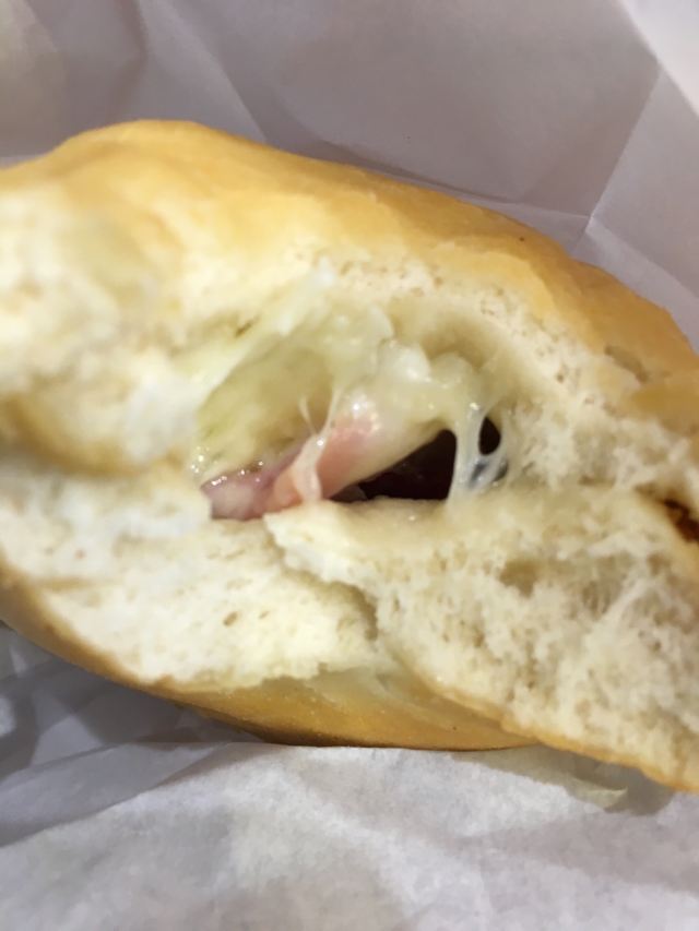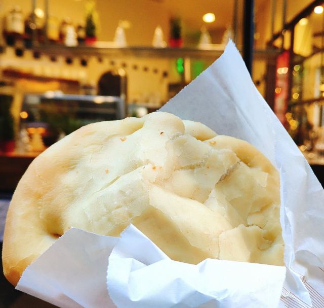味道很不错的小吃,松软的饼皮里面夹着你想要的馅料,推荐奶酪和火腿味道的。除了需要排队以外没有任何缺点。