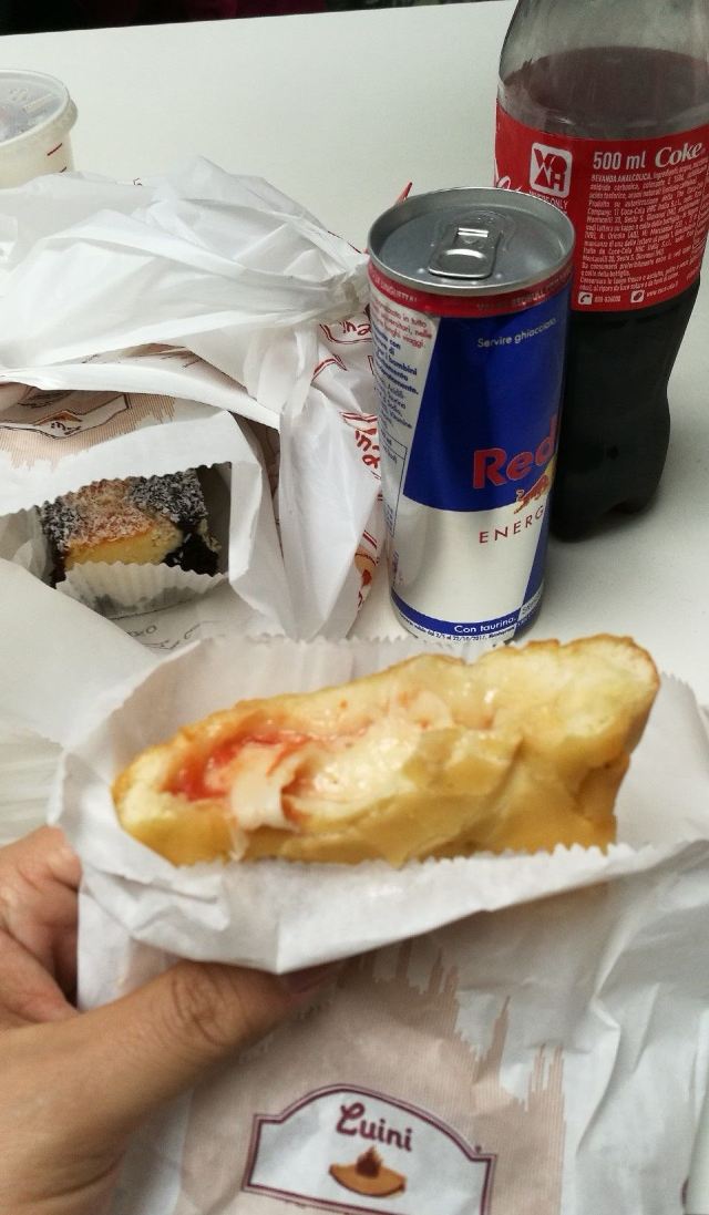 看到很多人在Luini排队买一个圆饼,看他们吃起来挺好吃的样子,买了一个发现是只有芝士和面饼的简约版披萨。11欧元一个煎饼果子的味道也是一般。要了全熟的牛排,吃到最后发现还是没有全熟,和国产牛排还是有差别的,第一次吃意大利版牛排,有一块咬不烂,不知道是不是牛排就是这样的。