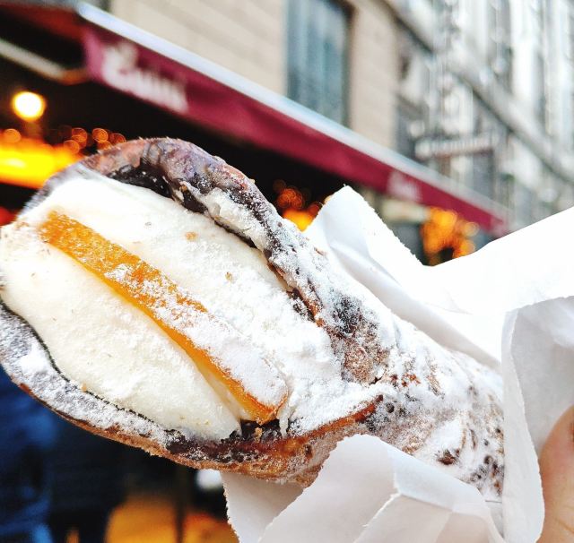 意大利有名的美食Panzerotti,类似于油炸面包,每一种面包里面的夹心都不一样。米兰这家店的Panzerotti可是名声在外,每天都要面对世界各地慕名而来吃意大利炸面包的游客,所以店门口经常排着长队,口味确实是让人赞不绝口!