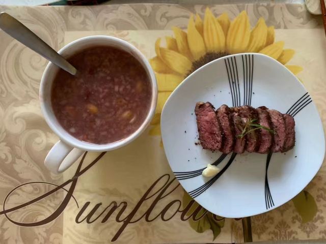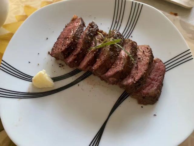 餐厅位于美茵河畔的观景位置,风景醉人。五分熟的牛排外焦里嫩,肉质鲜美。